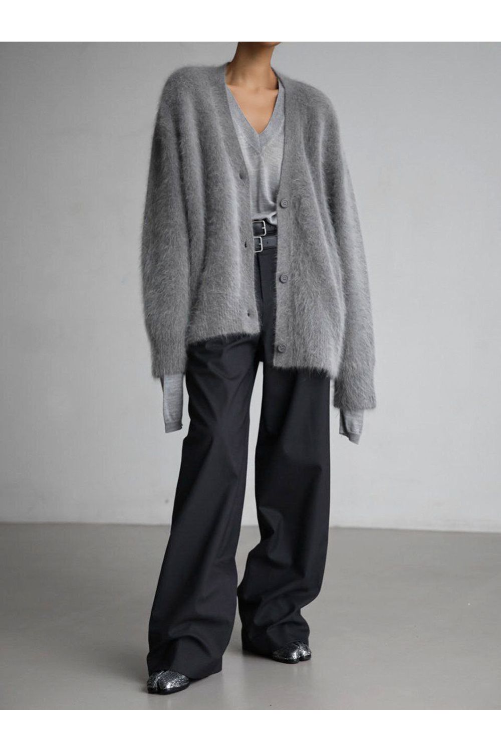 Casaco de malha com decote em v cinza - PP