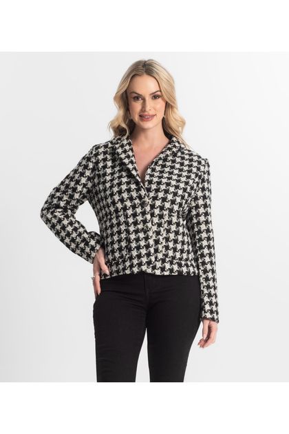 Casaco Feminino Tweed com Botões Giada, confeccionado em poliéster e totalmente forrado para maior conforto. Seu tecido em tweed confere um visual clássico e elegante, ideal para compor looks sofisticados nos dias mais frios. Possui fechamento frontal com dois botões e dois bolsos frontais, que além de funcionais, complementam o design moderno da peça. Perfeito para quem busca estilo e praticidade em uma só peça.-