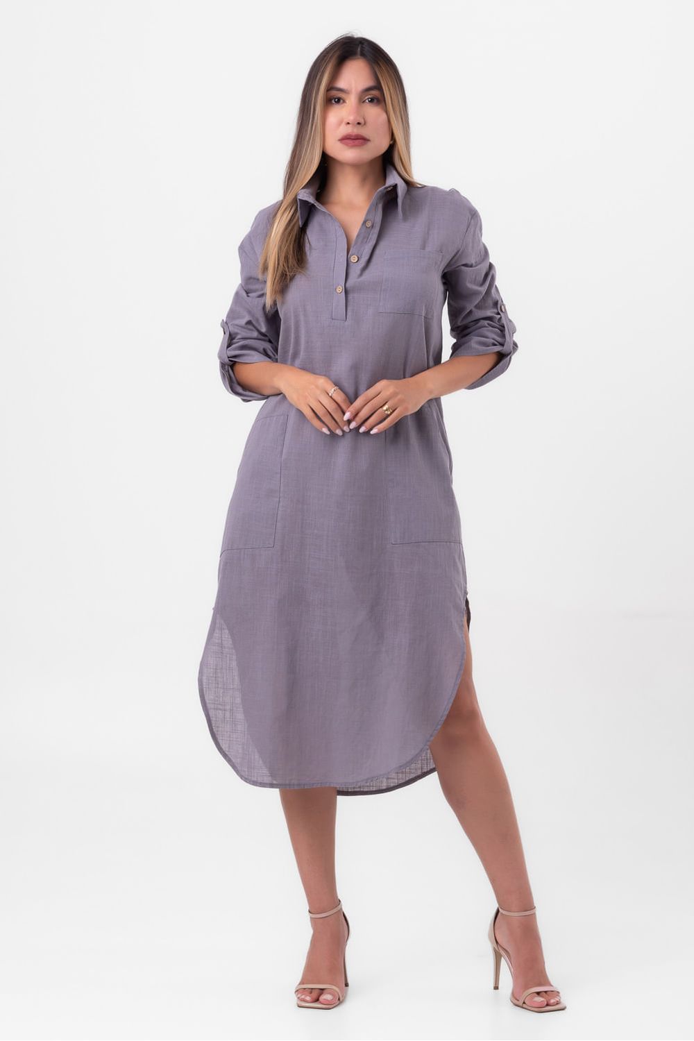 Chemise de linho manga longa cinza pequiá