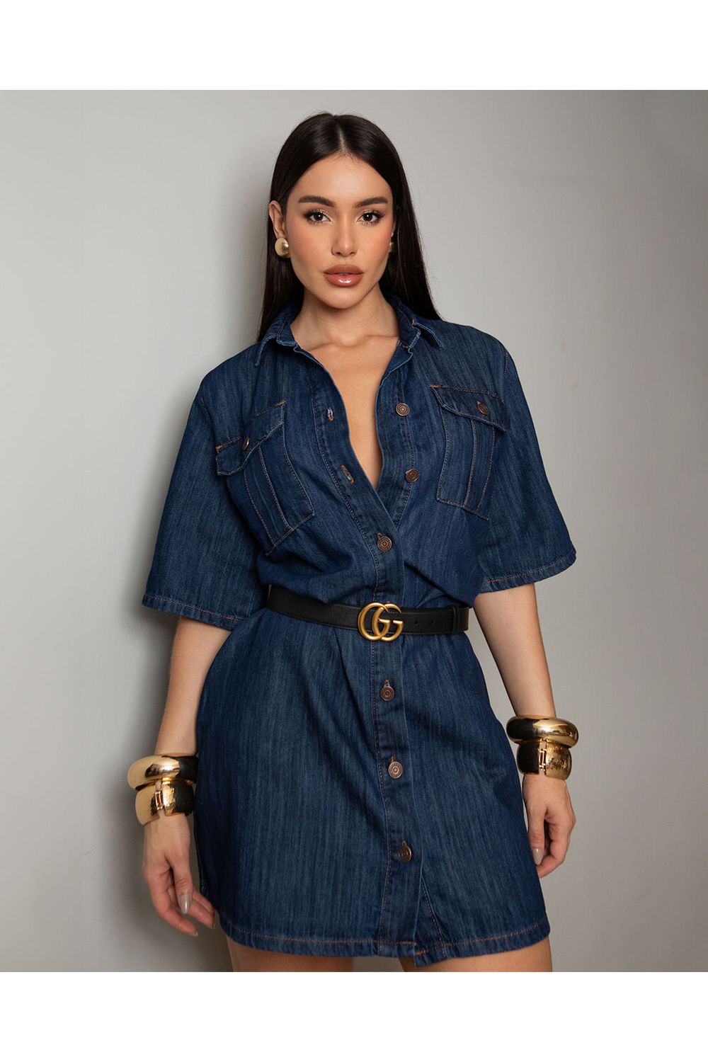 Chemise Jeans Oversize Feminino 24733 Escura