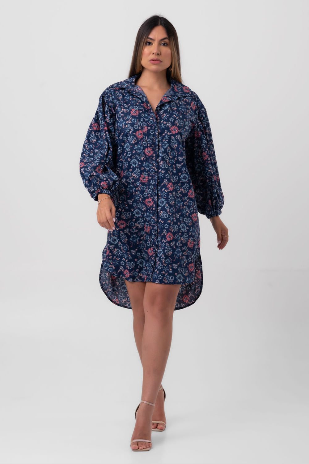 A Chemise azul em tricoline é elegante e moderna, ideal para looks descontraídos. Com modelagem oversized, proporciona caimento amplo e confortável. Mangas bufantes com elástico nos punhos adicionam um toque romântico.