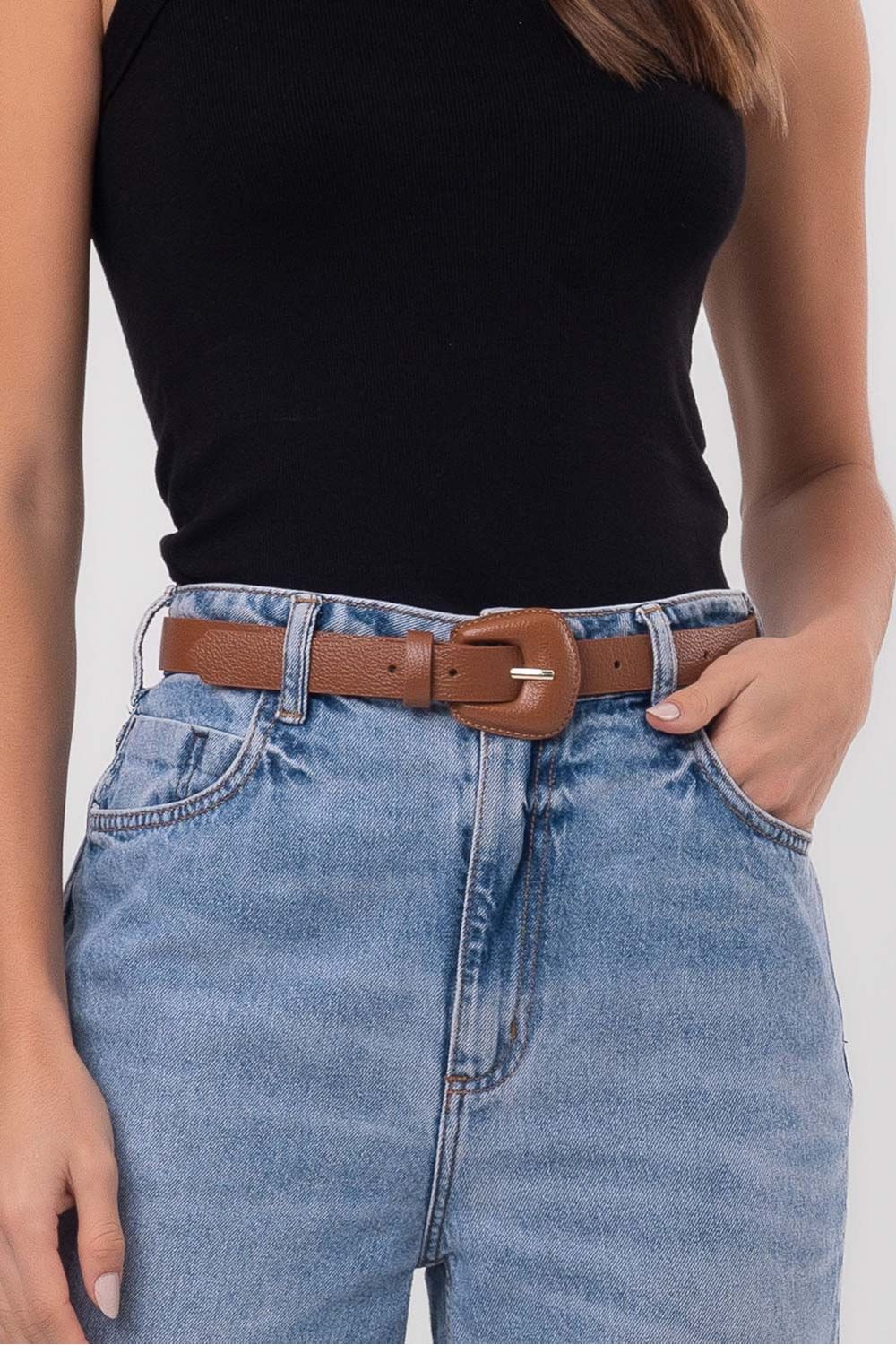 Cinto couro liso fivela encapada caramelo labrava