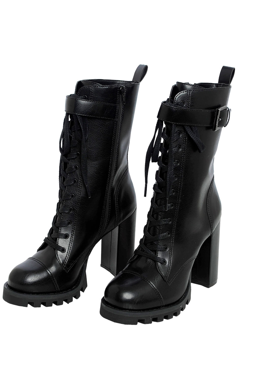 Combat buckle é confeccionada em material sintético, possui cano alto, fechamento por cadarço com pala sobreposta, aplicações de faixas laterais com fechamento por fivelas metálicas, salto alto no modelo bloco, sola tratorada e acabamento pespontado. *as peças podem variar a estampa de acordo com o corte. *a tonalidade das cores pode variar de acordo com o seu monitor.