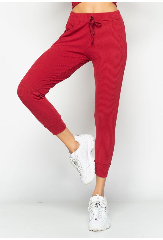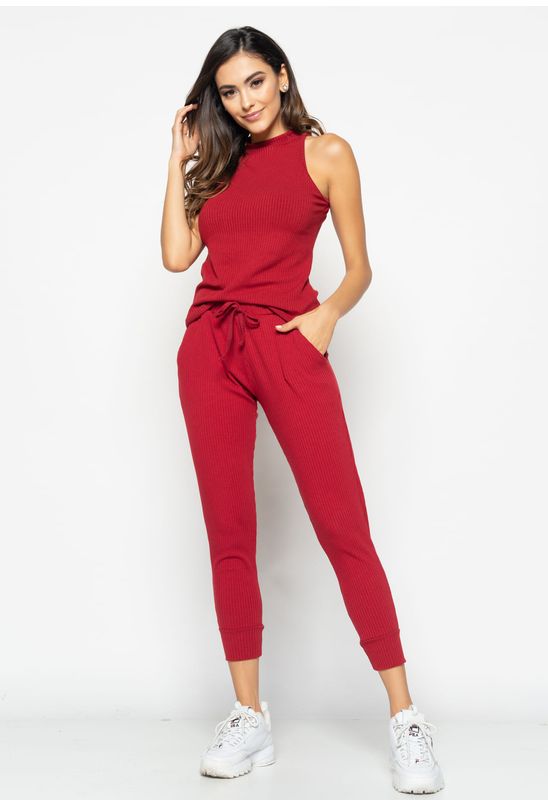 Conjunto Comfy Com Regata e Jogger Canelada Vermelho