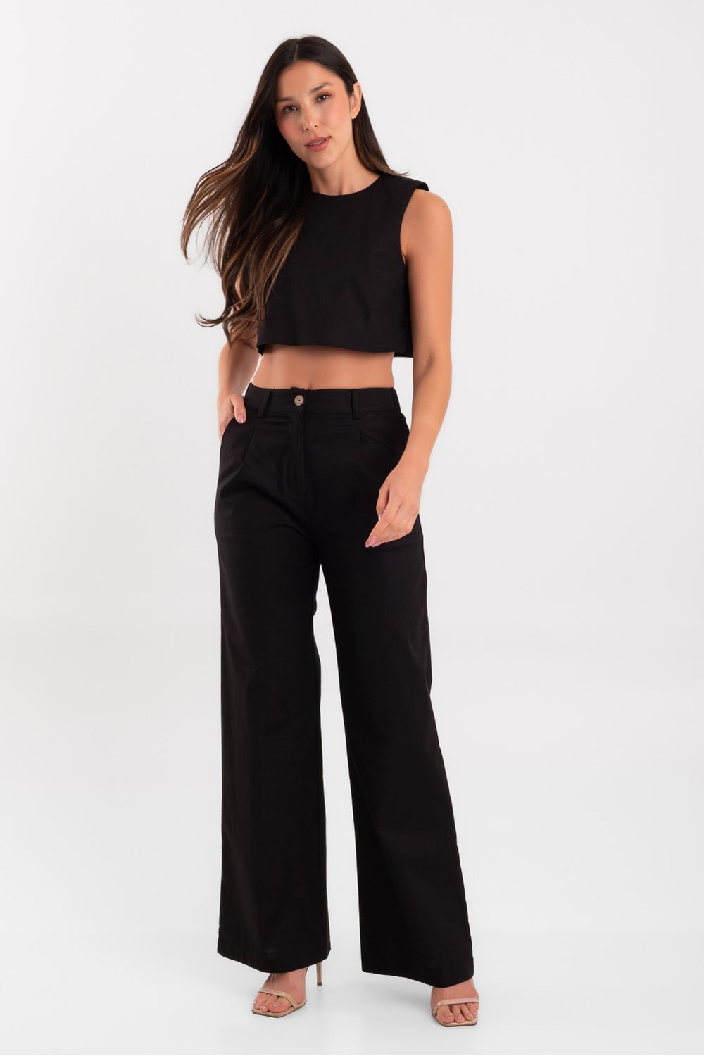 Nome: conjunto alfaiataria blusa cropped e calça reta preta