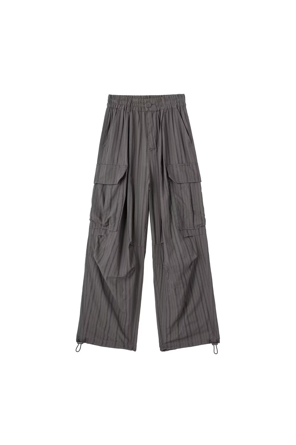 Conjunto blusa recortes com babados e calça cargo cinza escuro