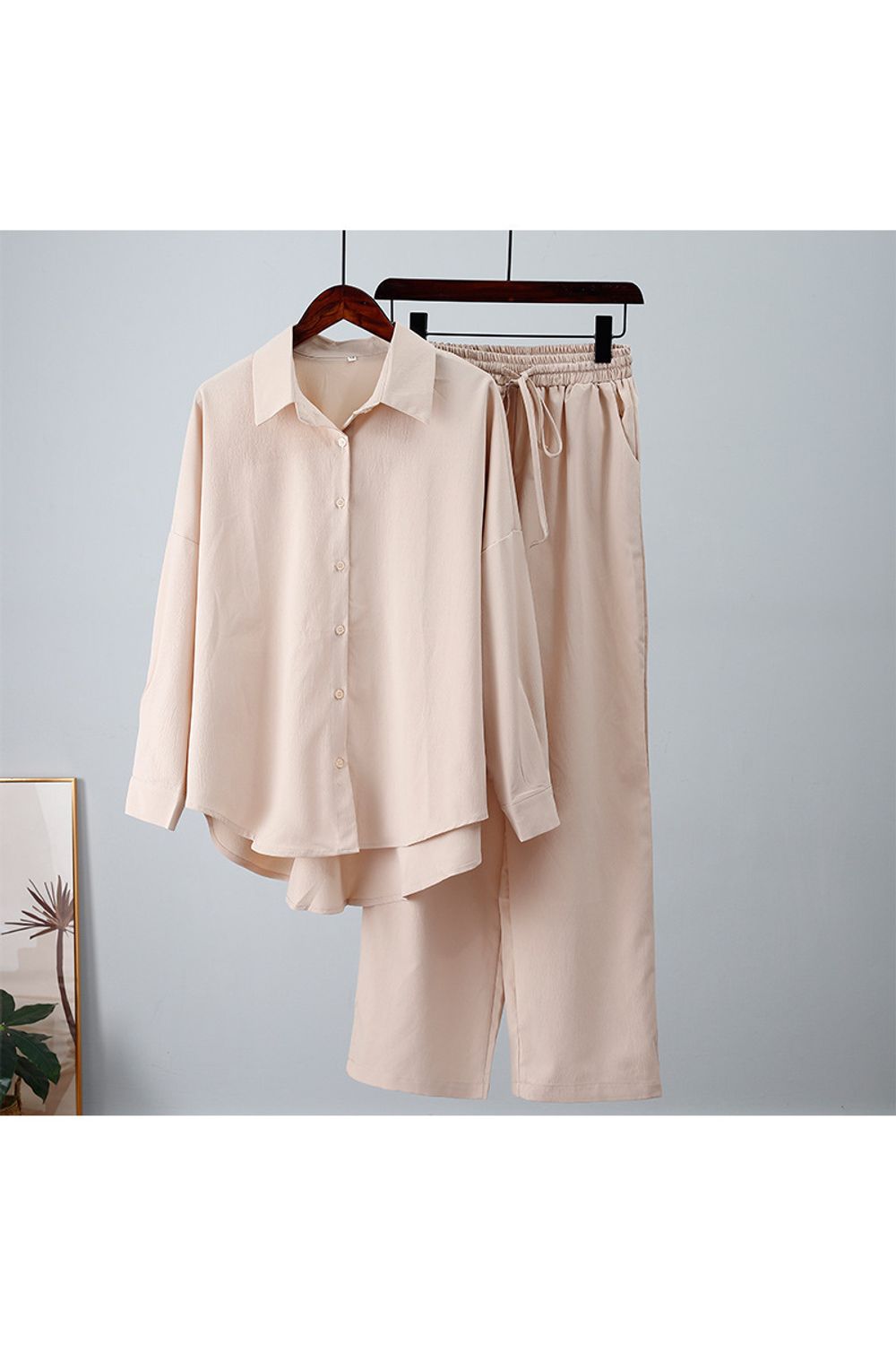 Conjunto casual camisa e calça reta bege