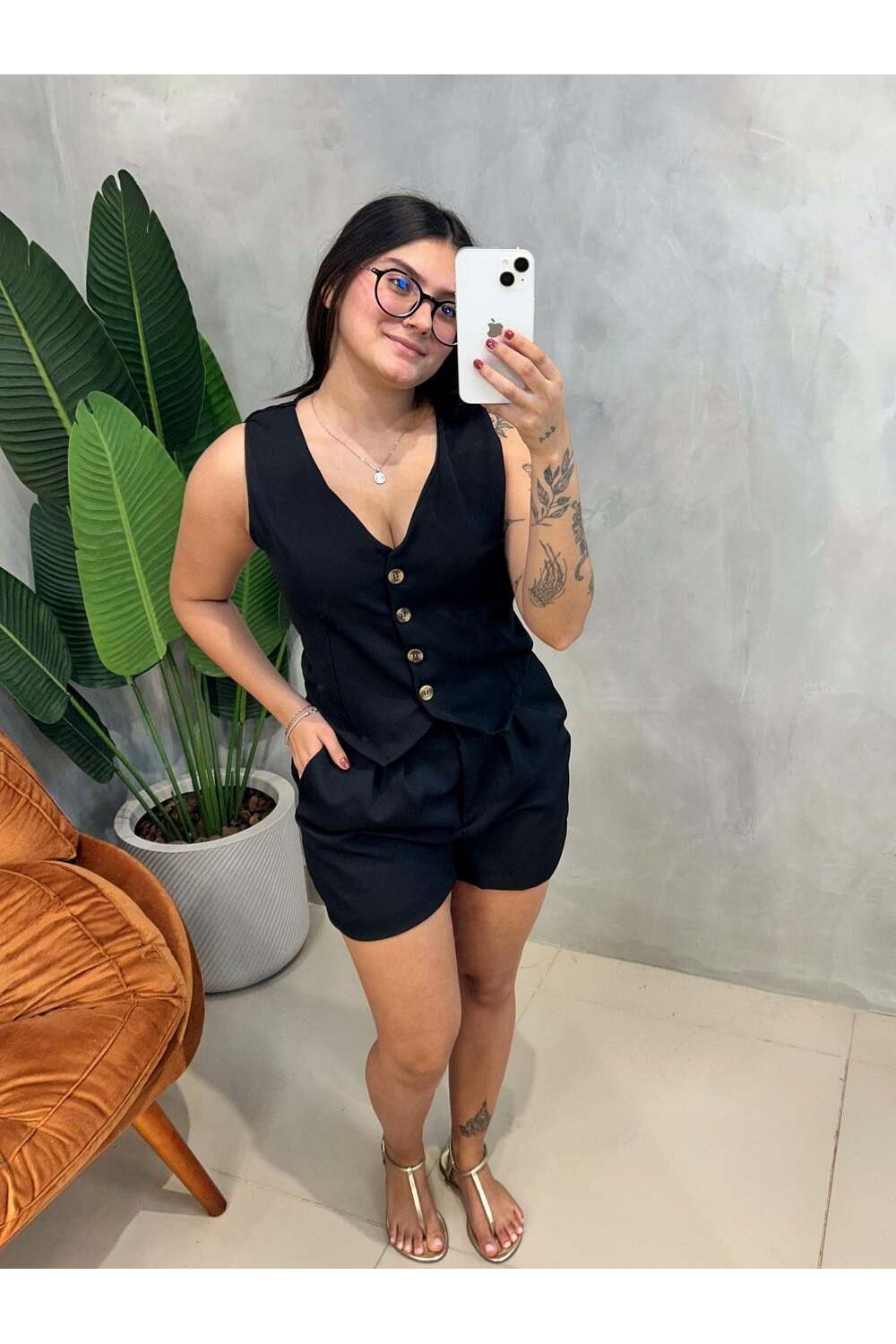 Conjunto em Alfaiataria Colete e Shorts com Cinto Kauane Ref. 1742
