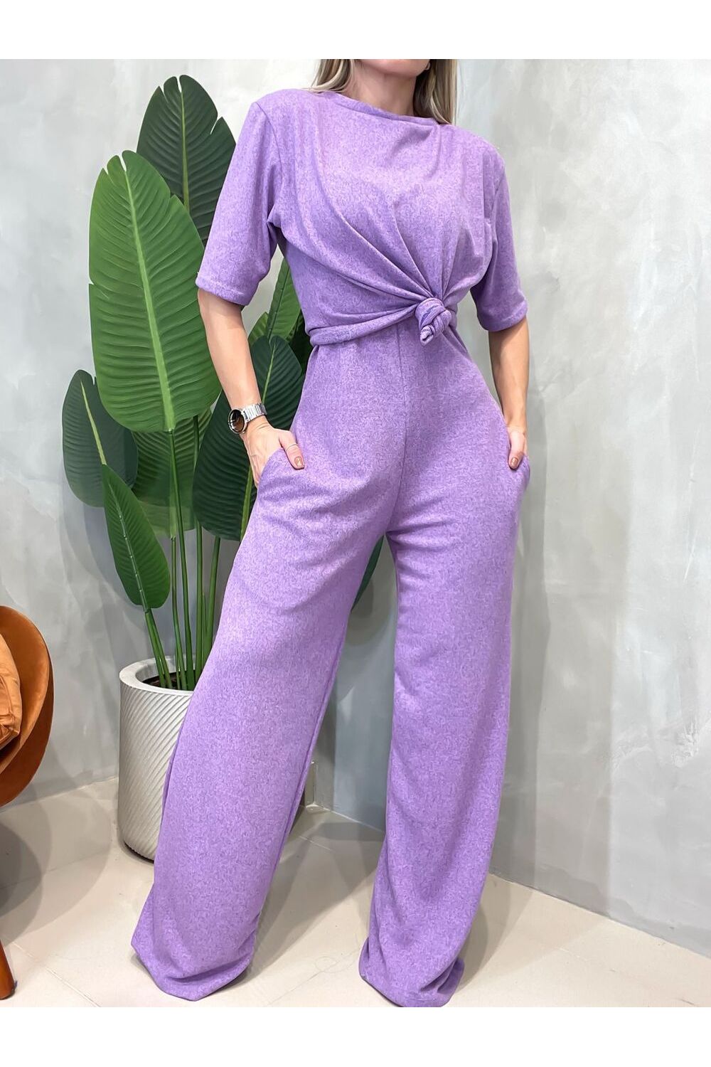 Conjunto em Lãnzinha Macacão e Blusa Manga Curta Ariana Ref. 1577 - Lilás - Único