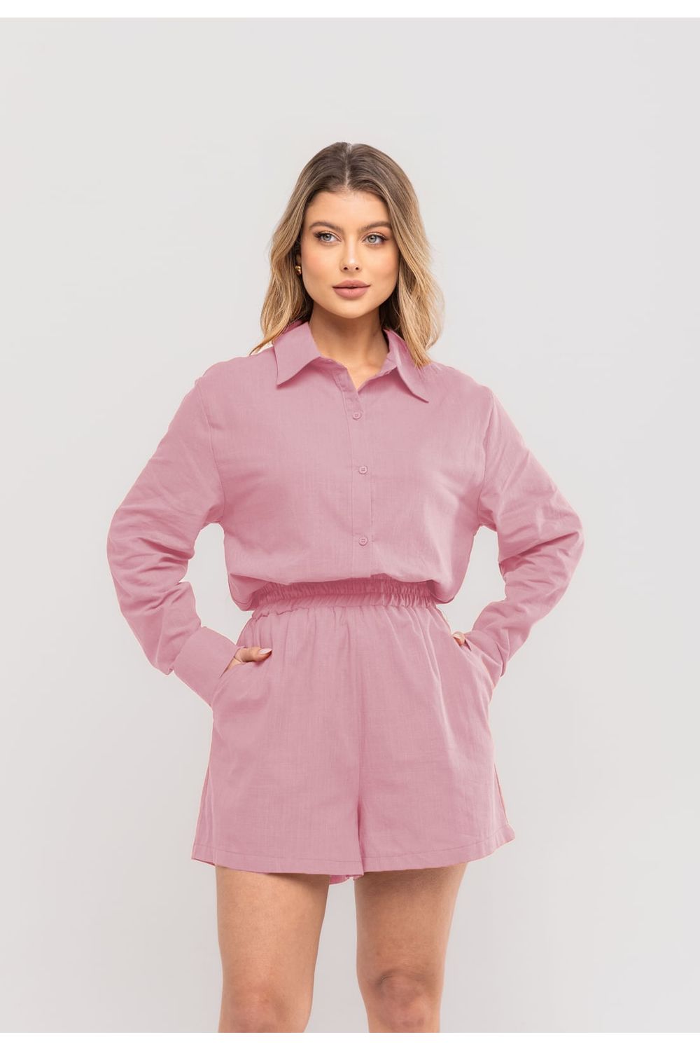 Com um design atemporal e tecido de alta qualidade, esse conjunto é a combinação perfeita para compor produções modernas e sofisticadas nos dias mais quentes.