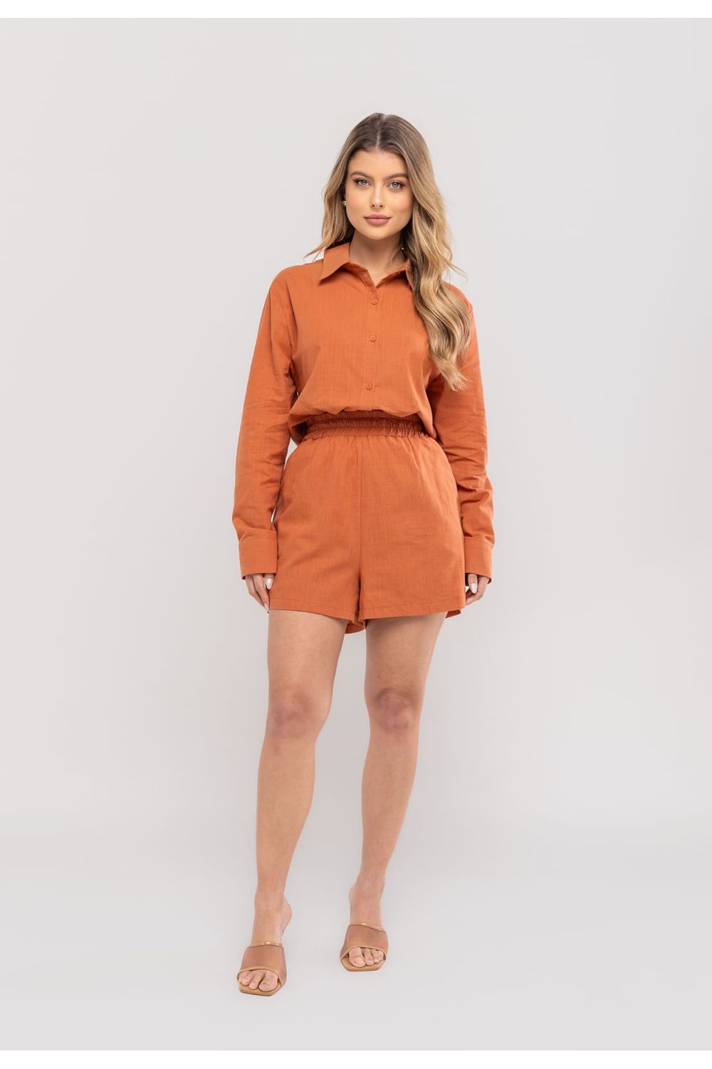 Conjunto Feminino De Camisa E Short Em Algodão Telha Salvatore