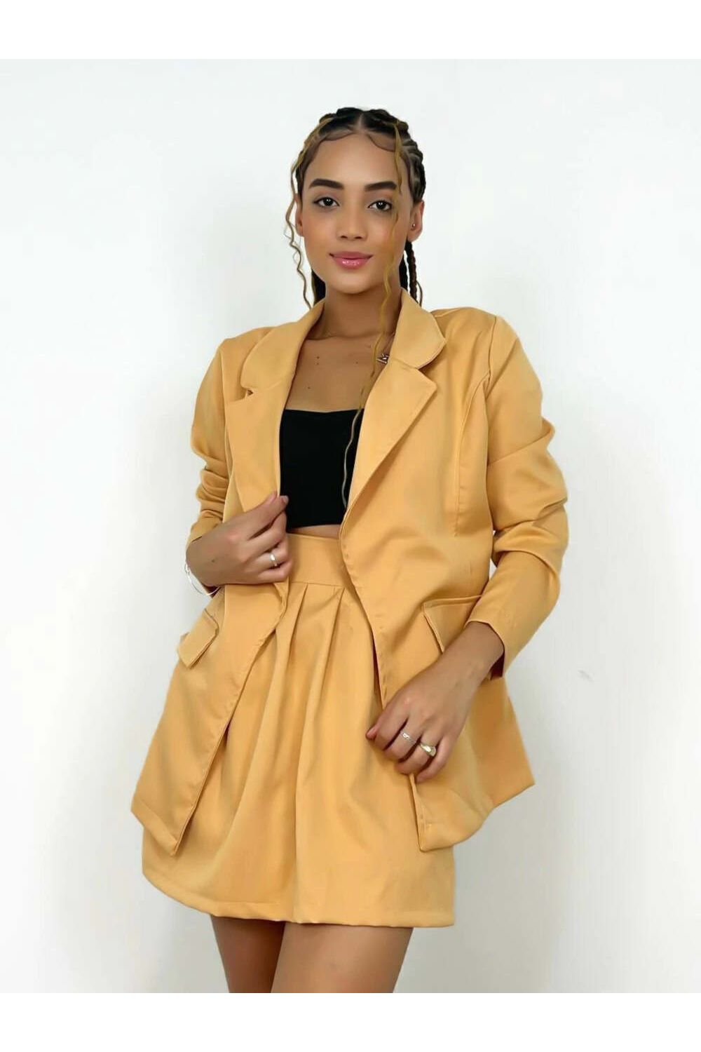 Conjunto Feminino em Alfaiataria Max Blazer e Short Saia Colegial Mayna Ref. 891 - Caramelo - G