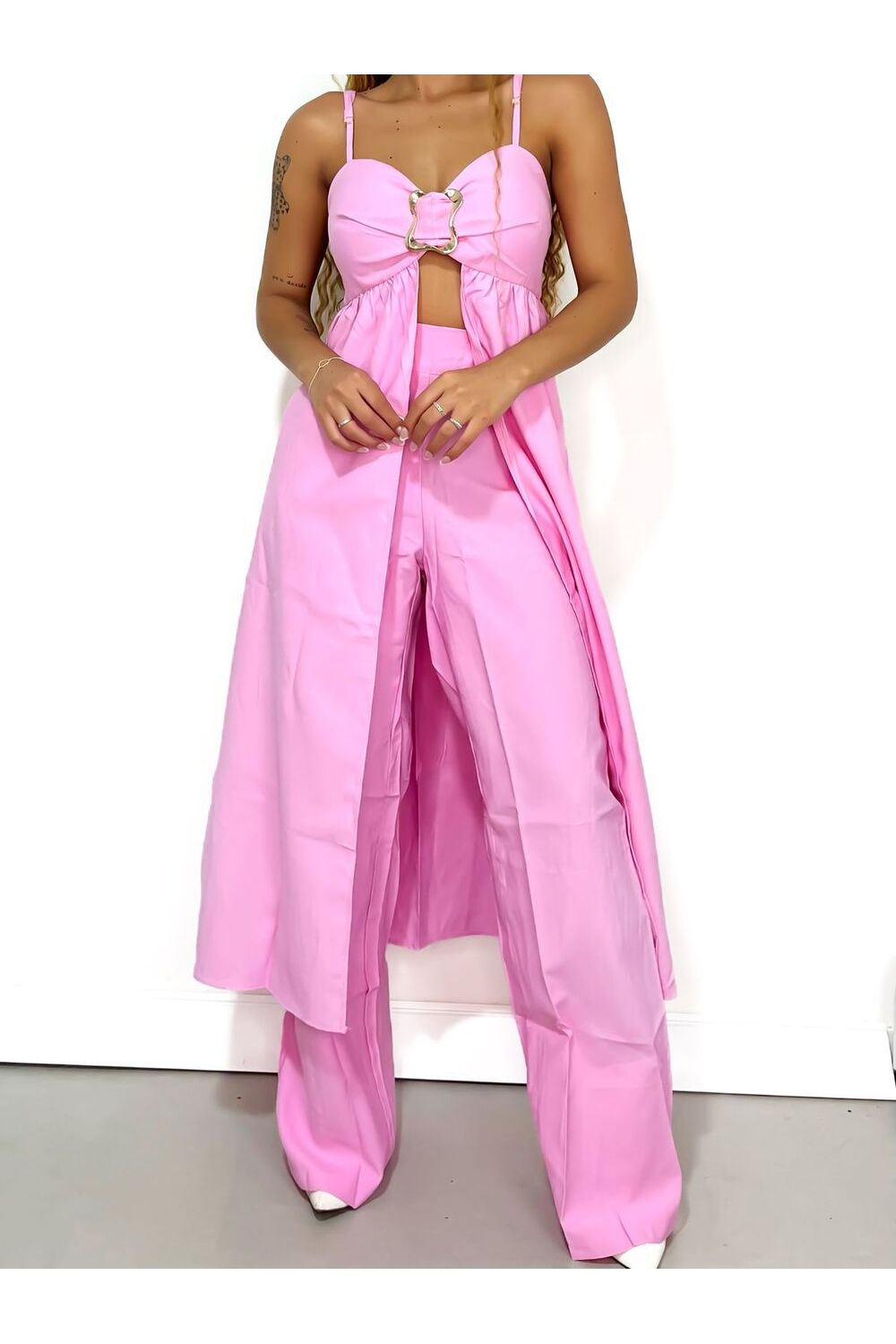 Conjunto Feminino em Alfaiataria Pantalona e Bata Alongada com Fivela Mayra Ref. - Rosa claro - Único