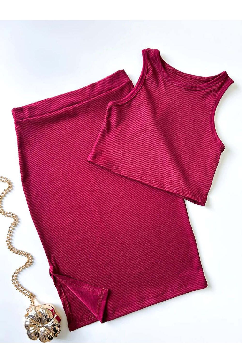 Conjunto Feminino em Ribana Regata e Saia Midi Daniele Ref. 1061 - Marsala - Único