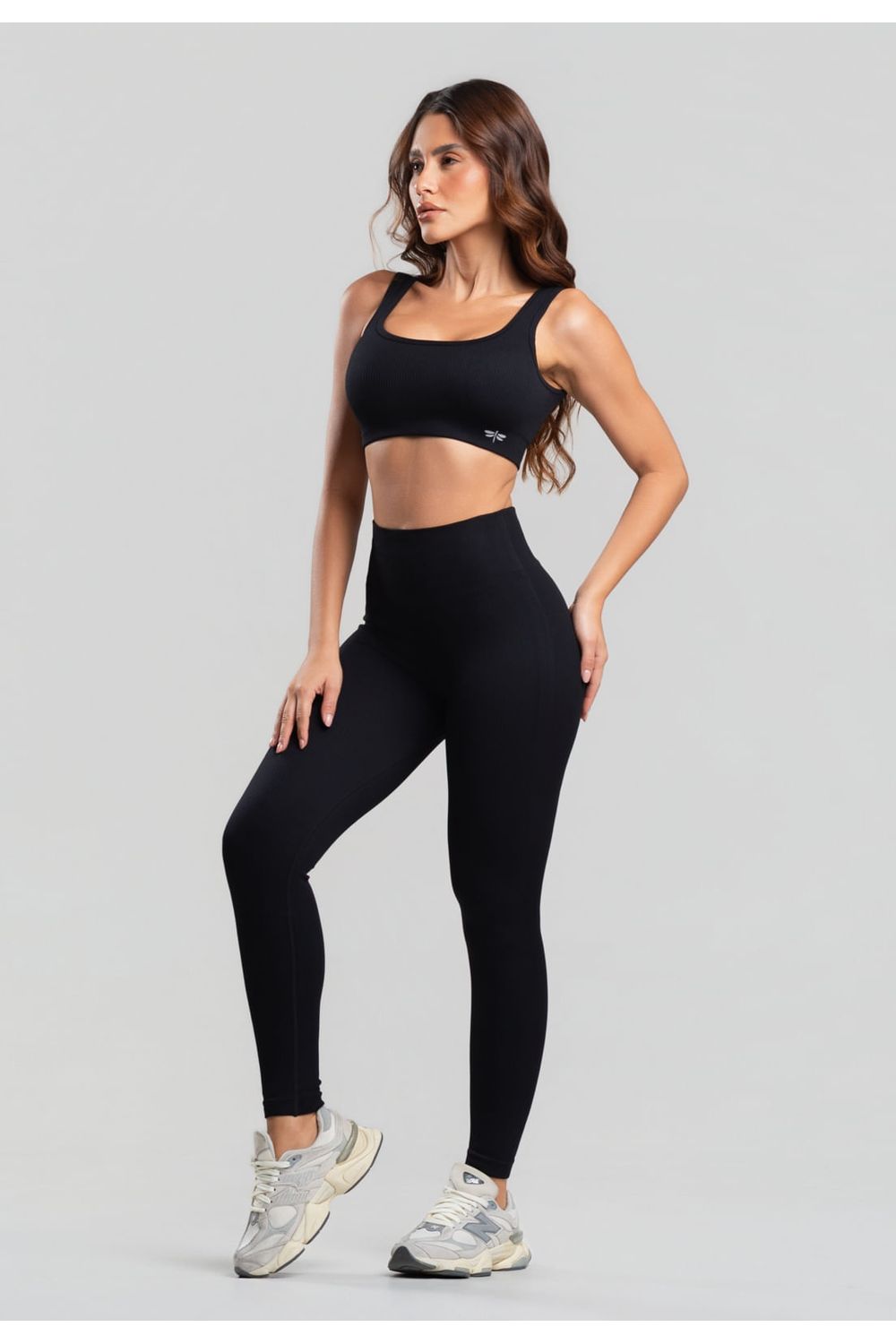 Conjunto Fitness Calça e Top Sem Costura Preto Salvatore