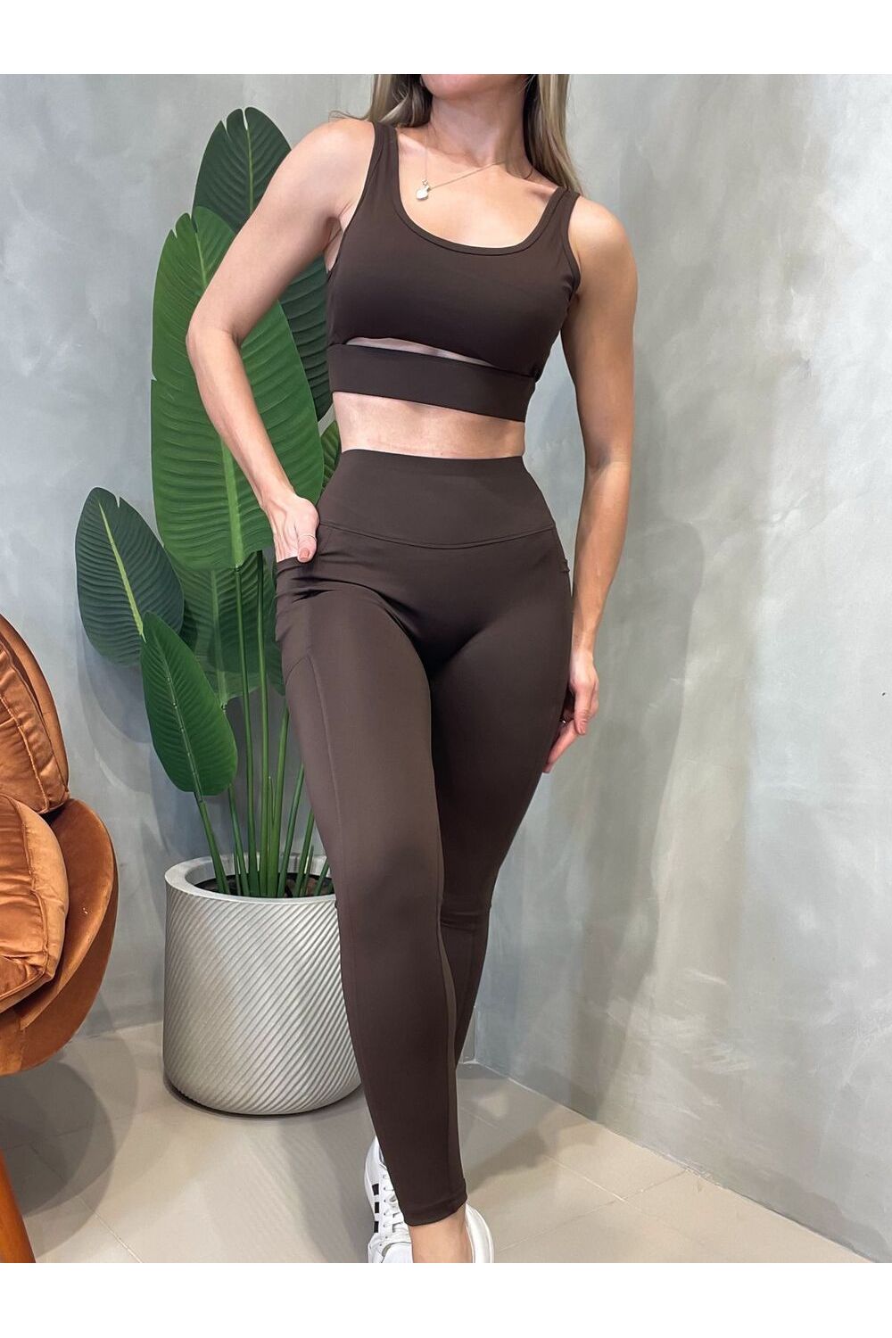Conjunto Fitness em Poliamida Top com Recorte e Calça com Bolsos Larissa Ref. 1572