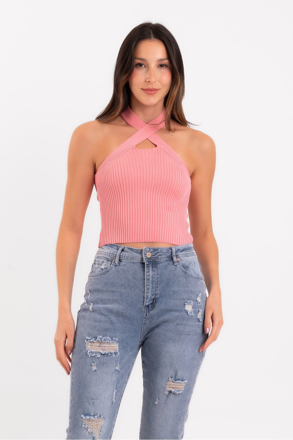 Cropped canelado decote transpassado rosa pequiá - U