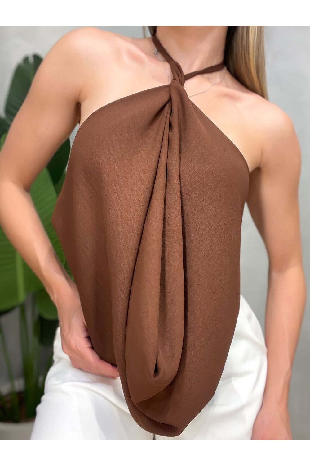 Cropped em Duna Retangular com Amarração Multiformas Jaqueline Ref. 1740 - Café - Único