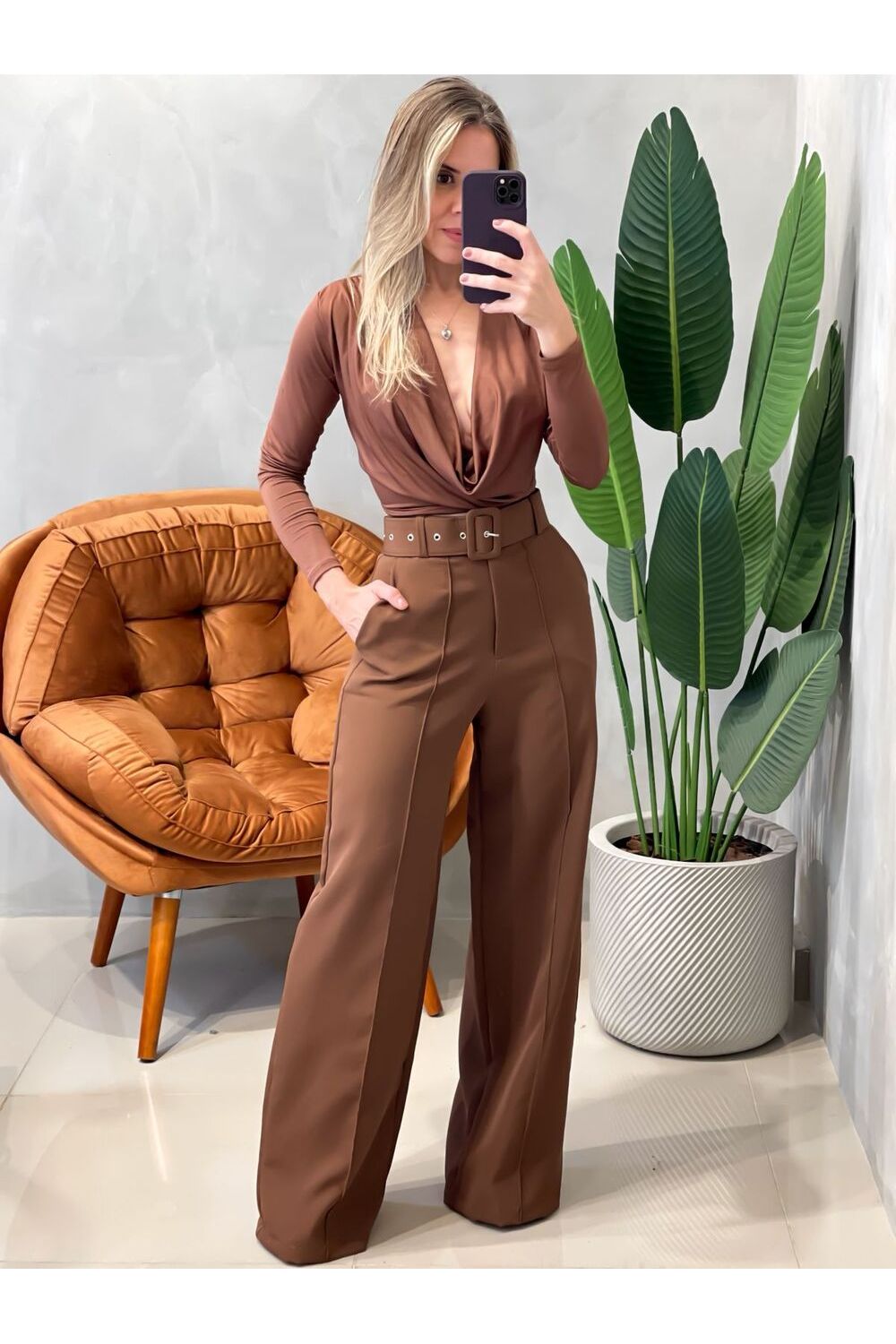 Cropped em Suplex Manga Longa com Gola Boba Sara Ref. 1548 - Marrom - Único