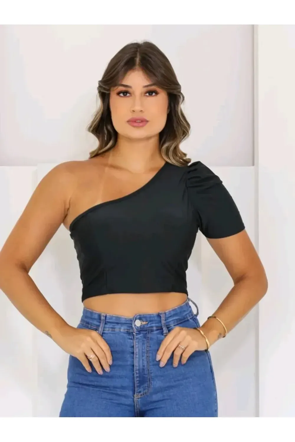 nome: cropped feminino top alcinha decote reto com bojo tecido suplex