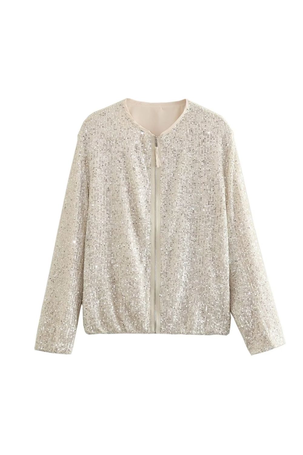 Jaqueta bomber paetê bege