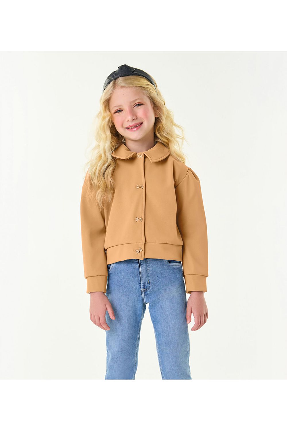 Descubra a elegância da Jaqueta Infantil Feminina em Suede Trick Nick, confeccionada em sintético rajado suede. Com gola dupla que adiciona um toque refinado, esta jaqueta é uma peça única para as pequenas fashionistas. O leve franzido na manga acrescenta um charme sutil, enquanto os botões proporcionam um fechamento prático e estiloso. O suede rajado confere uma textura suave e um visual moderno à jaqueta.-