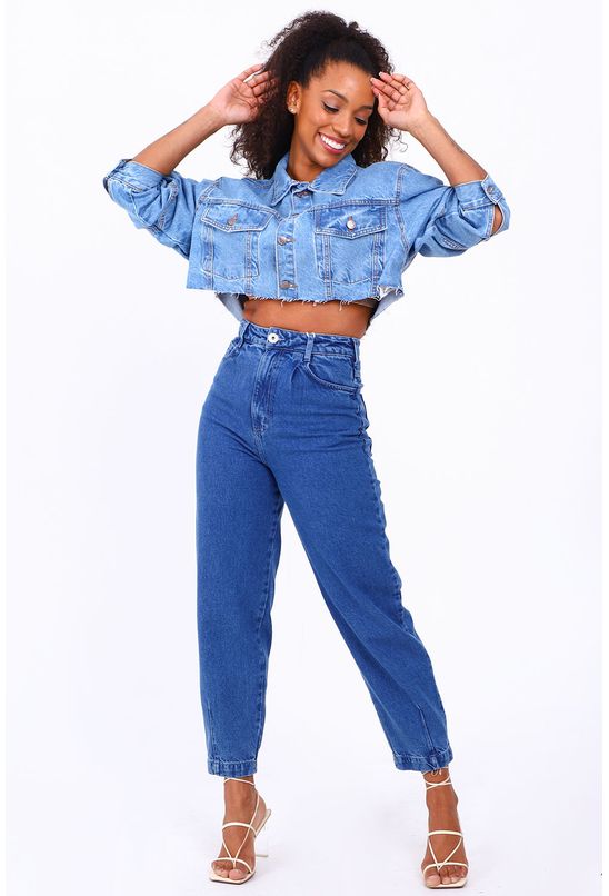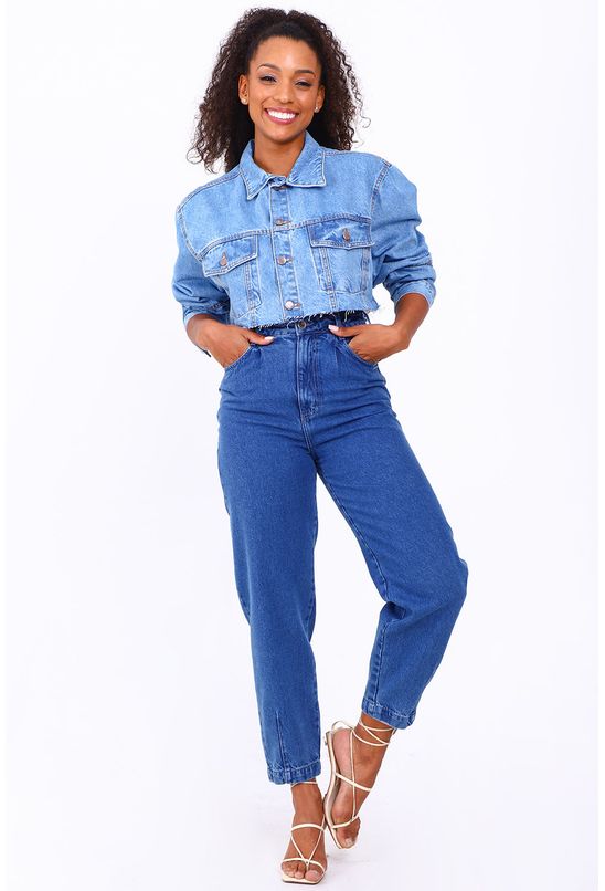 Jaqueta farm lisa, modelo jaquetas, cor azul, manga longa, tecido jeans. *as peças podem variar a estampa de acordo com o corte.