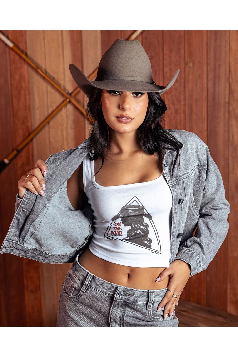 Jaqueta Jeans Cropped Feminina 24675 Cinza