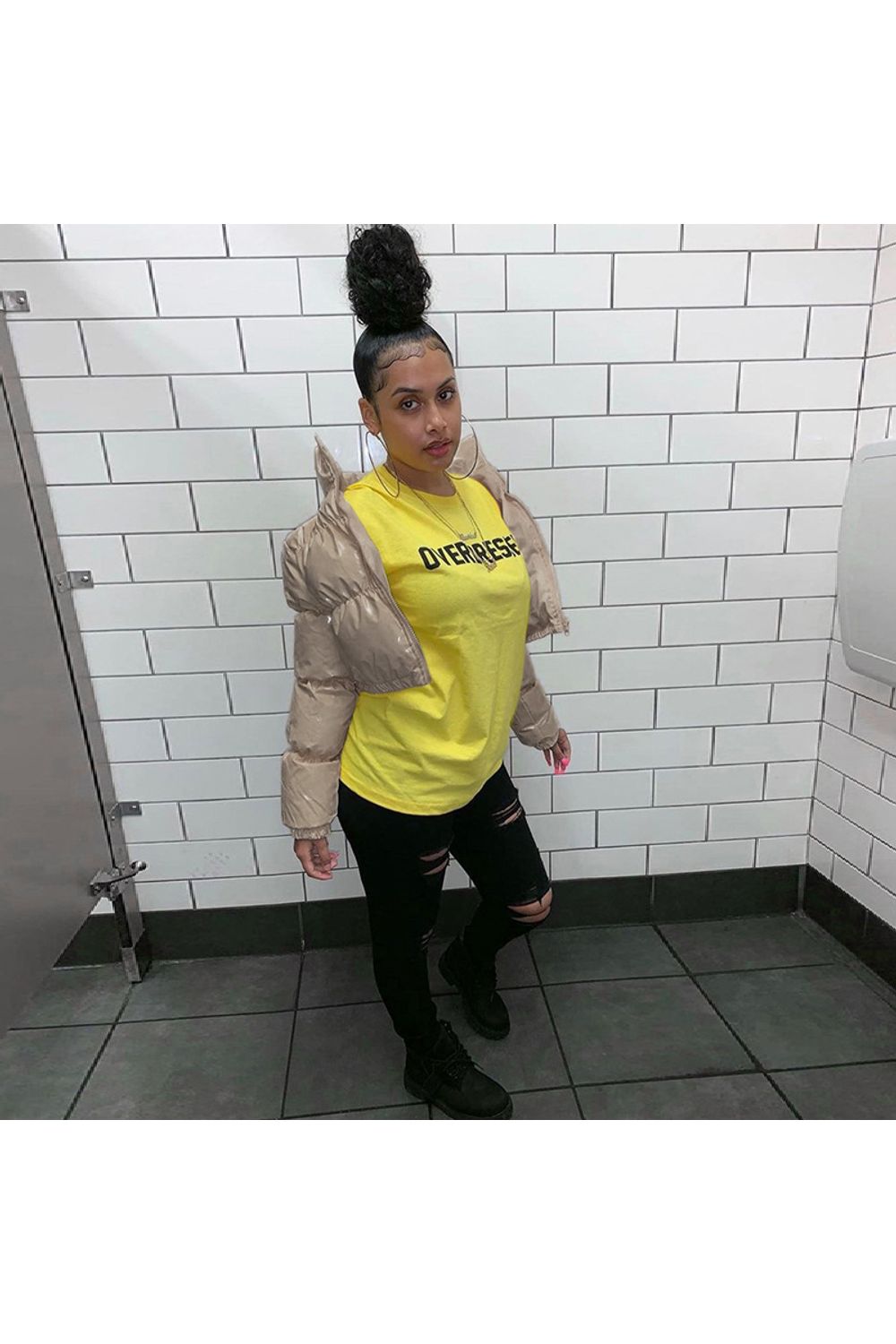 Nome: jaqueta puffer com zíper caqui
