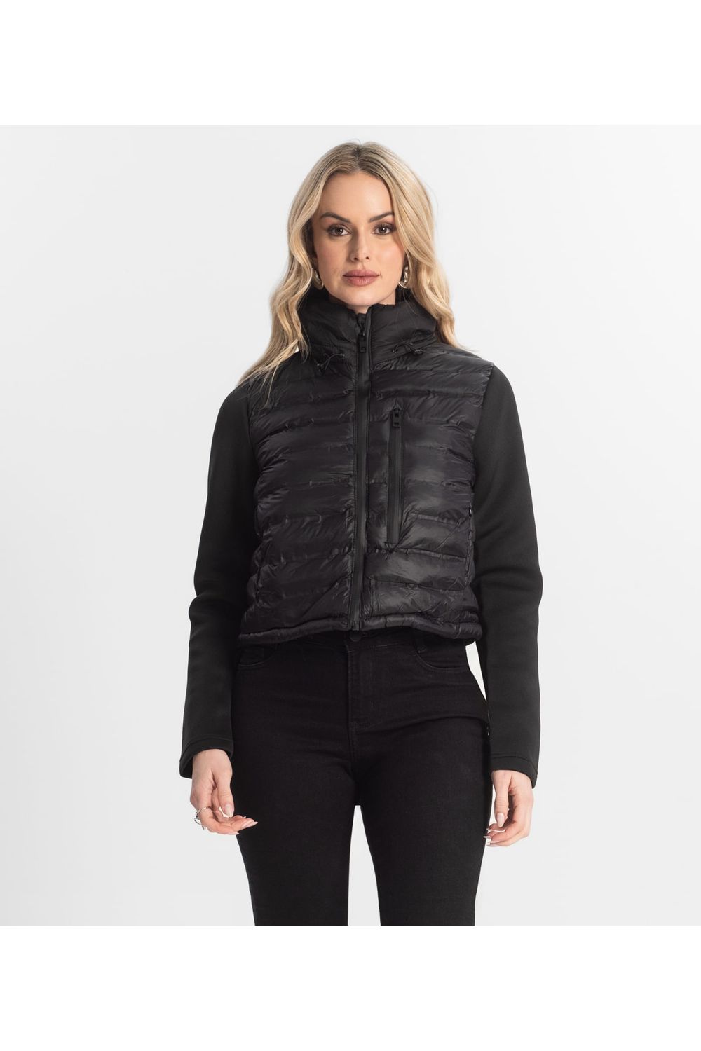 Jaqueta Puffer Feminina Com Bolsos Sea Surf Preto