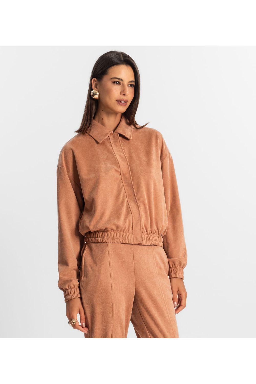A Jaqueta Feminina Rovitex, confeccionada em Suede Sarjado, é uma peça sofisticada e cheia de estilo. Possui gola entretelada com pesponto, conferindo um acabamento estruturado e elegante. O ombro deslocado adiciona um toque moderno, enquanto o bolso lateral com pesponto oferece funcionalidade e charme. O punho virado com elástico proporciona um ajuste confortável, e a vista entretelada com fechamento por botões de pressão adiciona um detalhe prático e refinado. Ideal para criar looks versáteis-