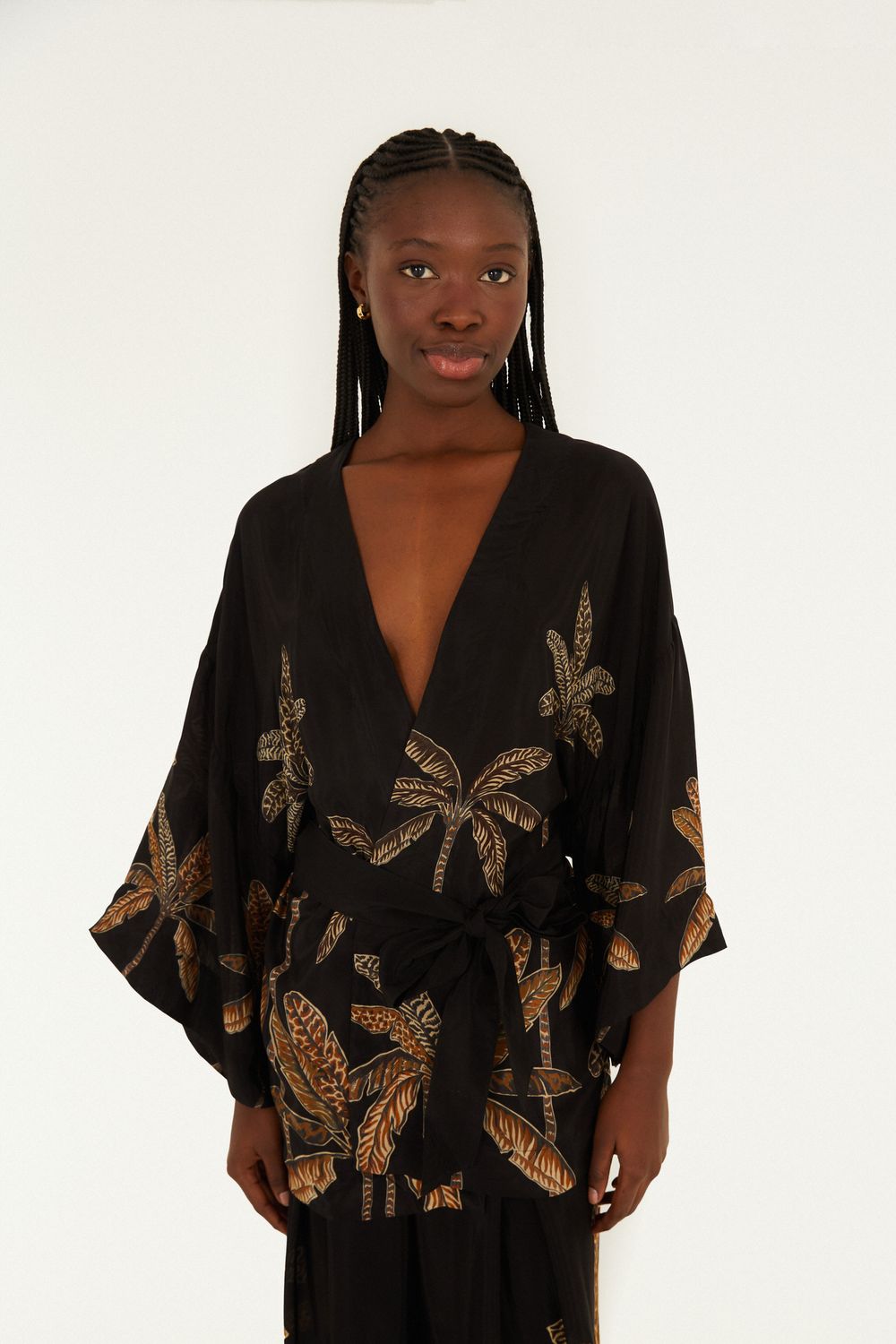 kimono estampado talamanca. estilo e originalidade em cada detalhe. com decote em v profundo, mangas amplas e amarração ajustável na cintura, é a peça perfeita para ocasiões casuais ou eventos especiais. versátil, complementa looks do dia a dia com personalidade única. FARM RIO original - alto inverno 25.-