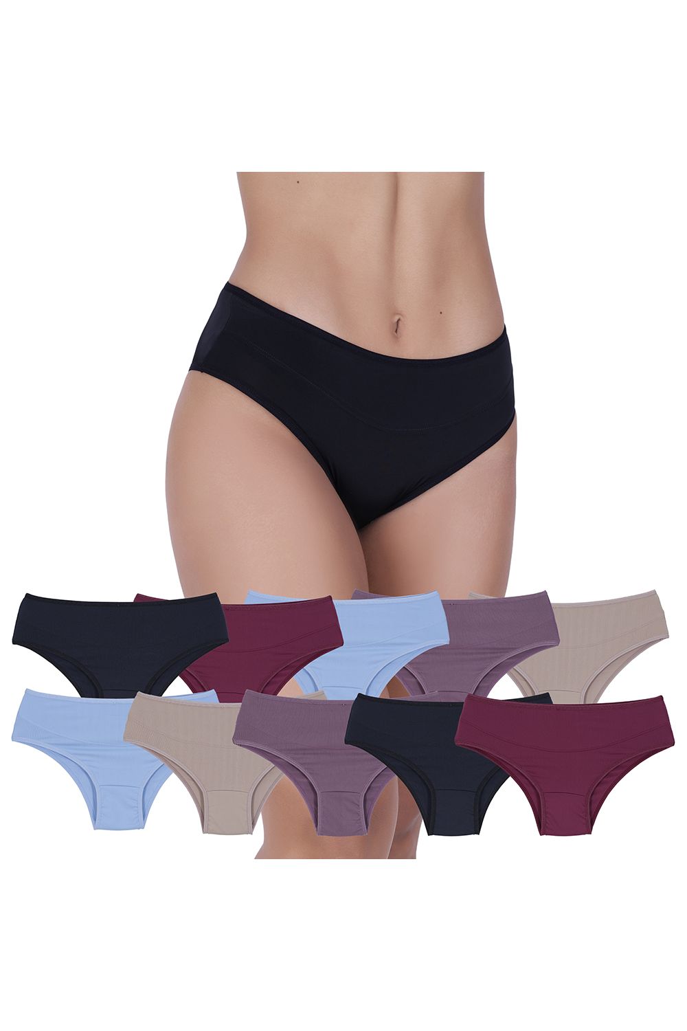 Kit com 10 peças. A calcinha Graciosa é confeccionada em microfibra, com cintura mais alta tornando a peça mais confortável e vestindo melhor, detalhe de costura na frente com tecido duplo.