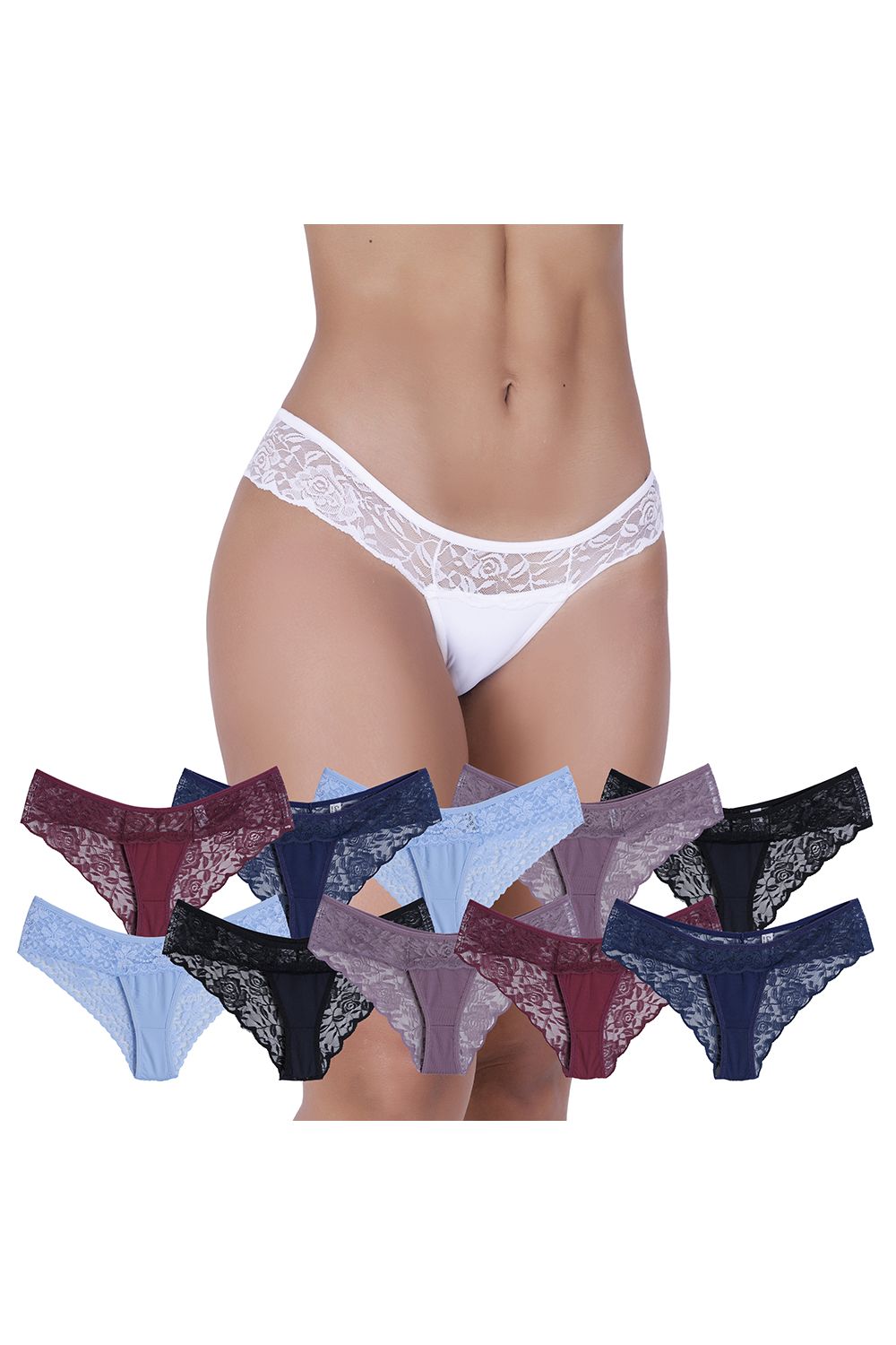 Kit com 10 peças. A calcinha Noite é produzida em microfibra, com a parte traseira toda em renda trazendo sensualidade e elegância ao corpo.