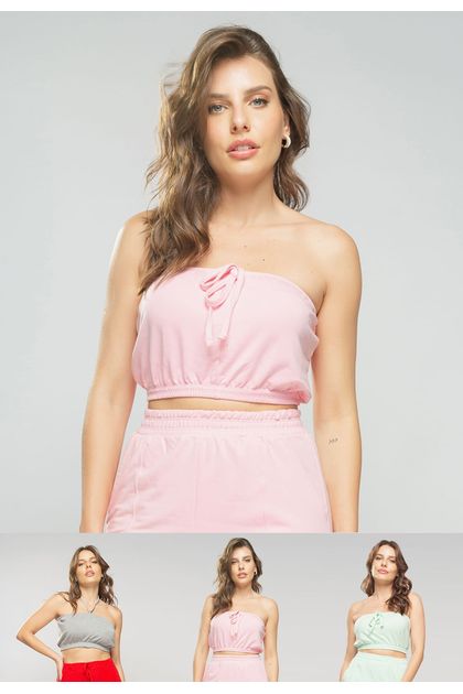 Kit 3 Croppeds tomara que caia confeccionado em malha comfort. Possui recortes, amarração e elástico para uma melhor sustentação. Perfeito para compor looks dentro das tendências. O tecido oferece um super conforto e ótimo caimento. Modelo veste tamanho P. Medidas da modelo: Altura 1,70 – Busto 86 – Cintura 65 – Quadril 91 – Manequim 36. Composição: 63% Poliéster, 34% Viscose, 3% Elastano.
