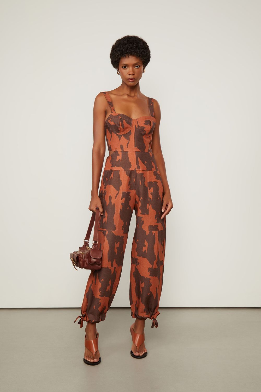 Macacão Alça Larga Amarração Na Barra Com Linho Estampado