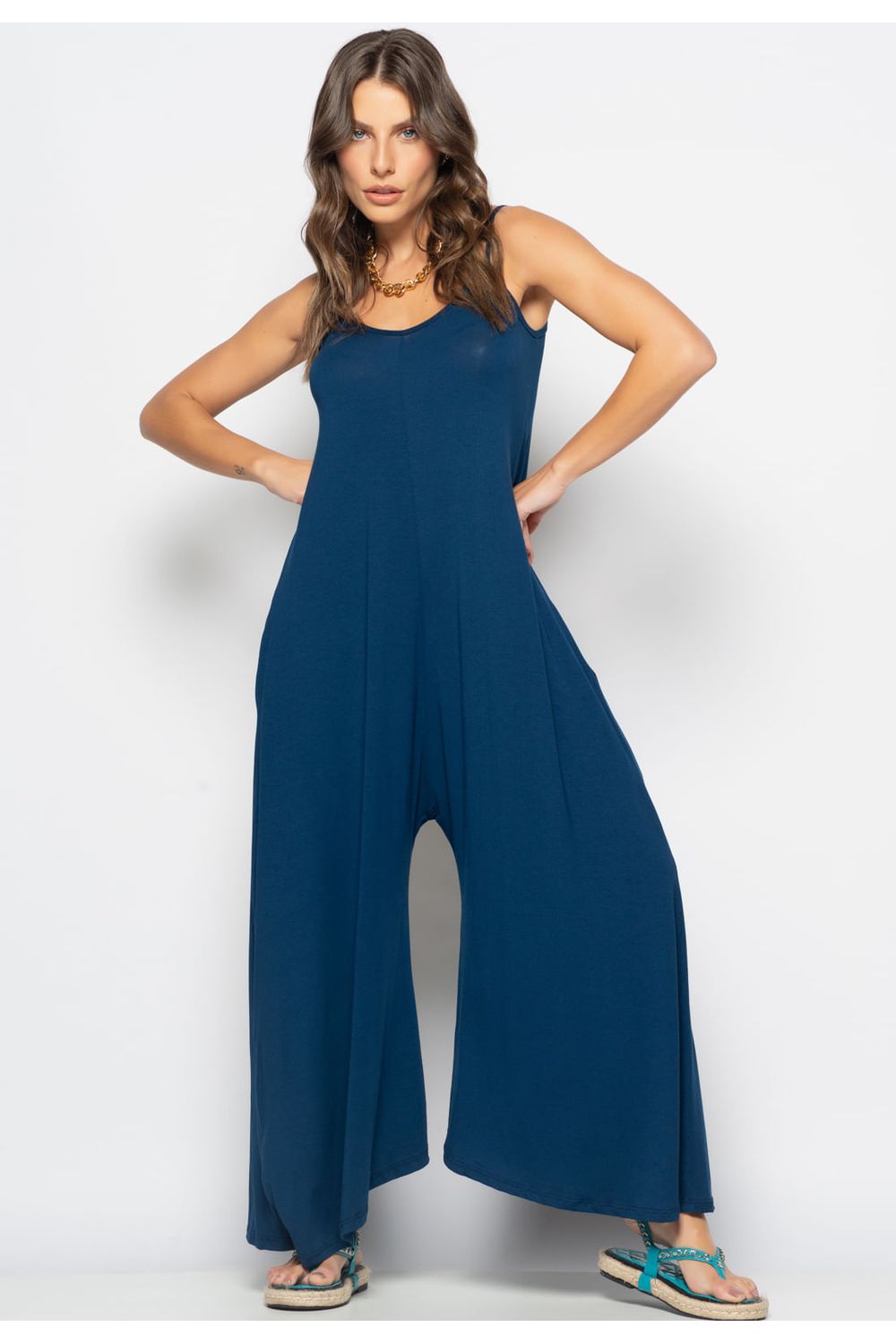 Macacão Alcinha Pantalona Malha Marinho Salvatore