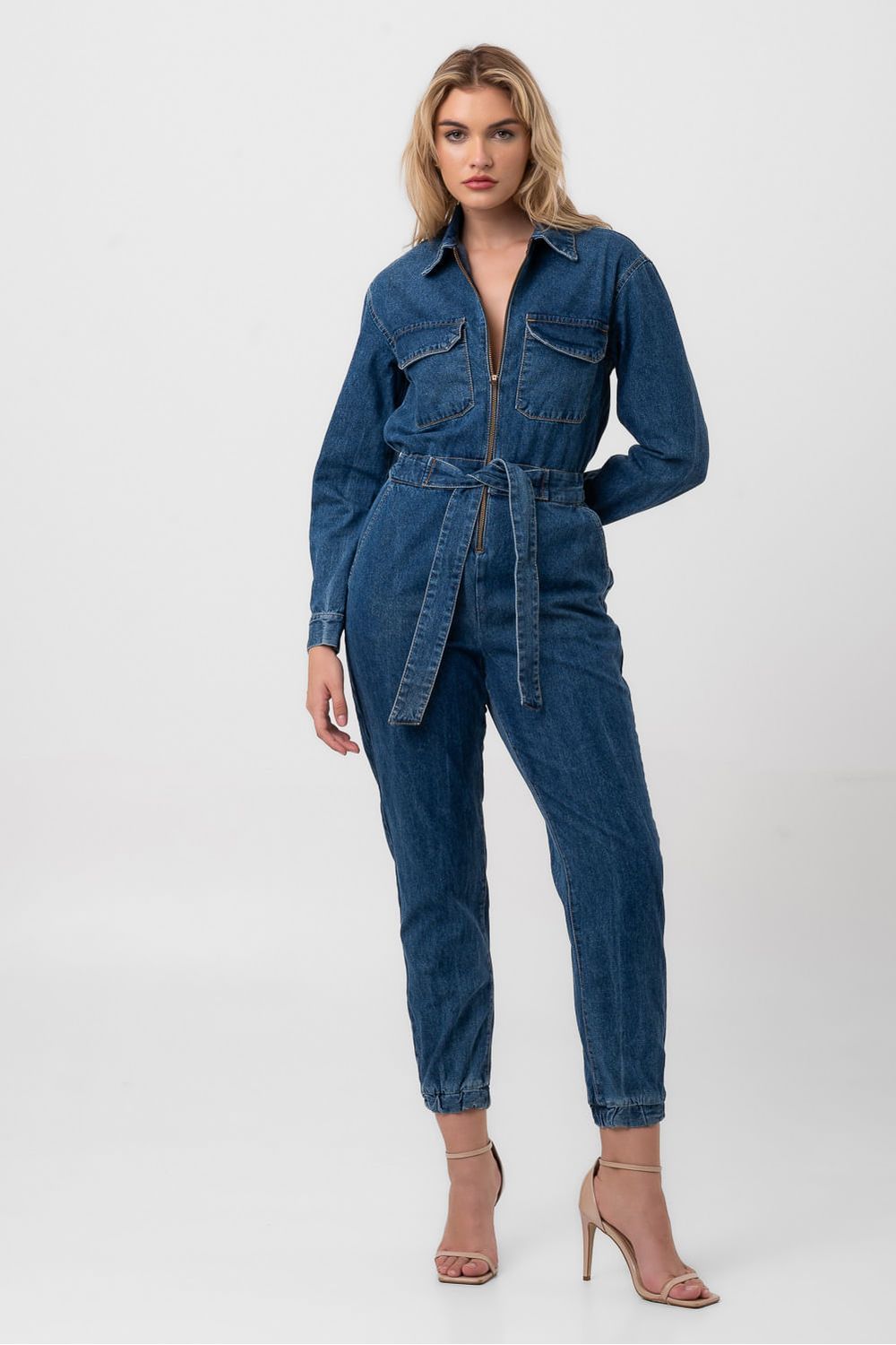 Macacão denim zíper vintage dress to
