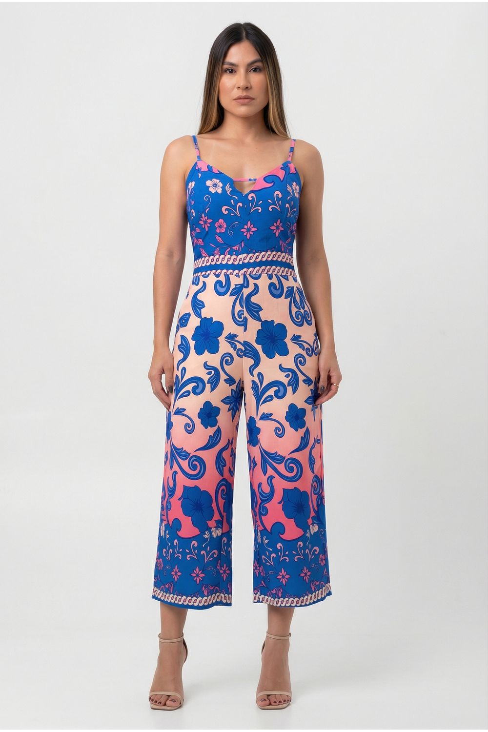 Macacão estampado pantacourt alças finas - cod 186