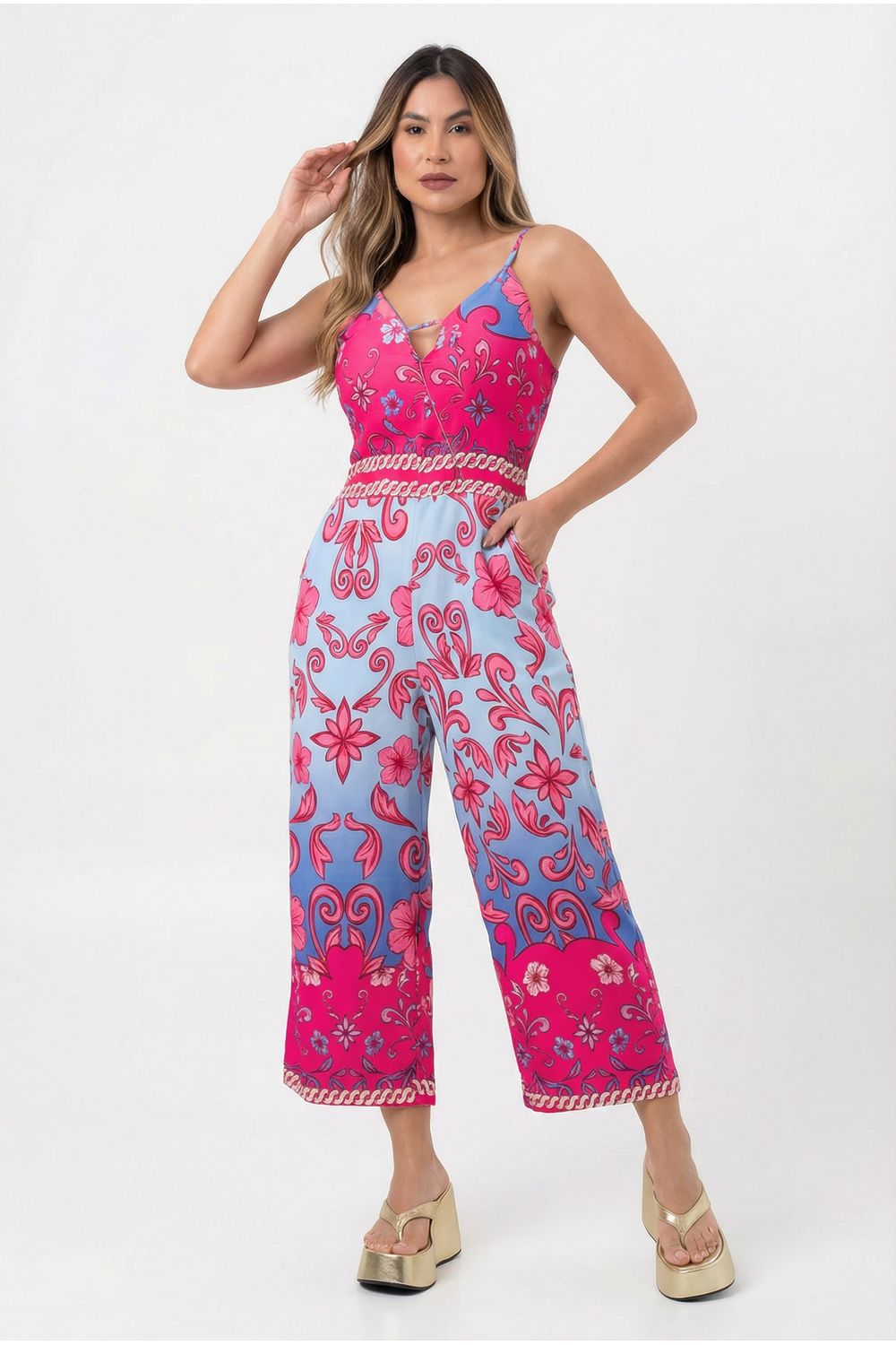 Macacão estampado pantacourt alças finas - cod 186