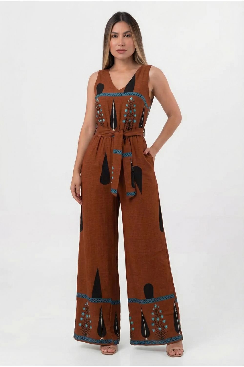 nome: macacão gota boho pantalona alça larga com cinto.