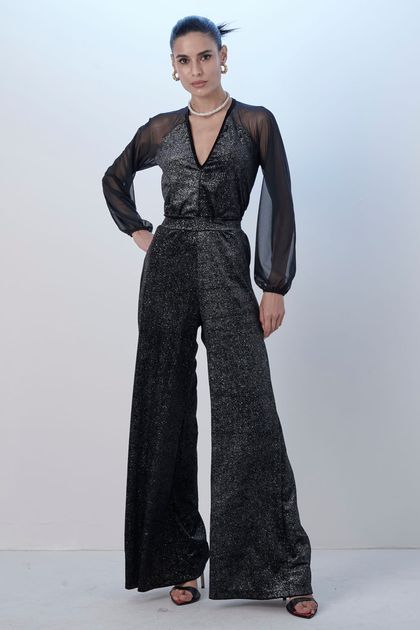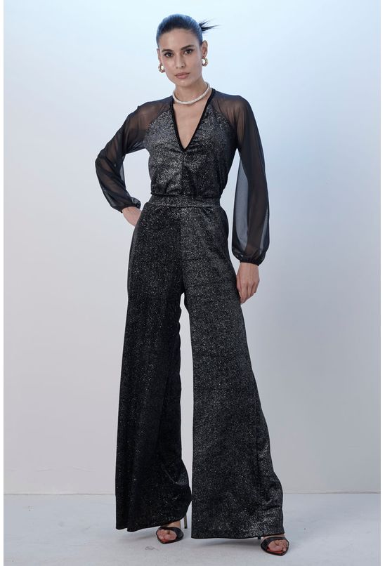 O macacão é uma peça de roupa deslumbrante, elegante e perfeita para ocasiões especiais. Ele apresenta um acabamento em glitter, proporcionando um brilho sutil e sofisticado. As mangas são longas e feitas de tule, um tecido transparente e leve, com elástico nos punhos, o que cria um efeito delicado e levemente franzido. A parte inferior do macacão possui pernas de corte mais largo, conferindo um estilo moderno e fluido. Ele é acinturado com elástico na cintura, realçando a silhueta feminina e proporcionando conforto ao mesmo tempo. O decote em V adiciona um toque de sensualidade à peça, destacando o colo e o busto. Na parte de trás, o macacão possui fechamento em zíper, facilitando o vestir e garantindo um ajuste perfeito ao corpo. A composição do tecido é de 96% poliéster e 4% elastano, o que proporciona uma peça durável, com resistência a rugas e boa elasticidade para se adaptar ao corpo. O forro interno é feito de 100% poliéster, garantindo conforto e suavidade ao contato com a pele. Nossas peças acompanham as linhas do corpo com fluidez, leveza e conforto, abraçando todos os estilos valorizando a mulher. Aposte no Macacão SMK para se sentir inKrível em qualquer ocasião todos os dias.-