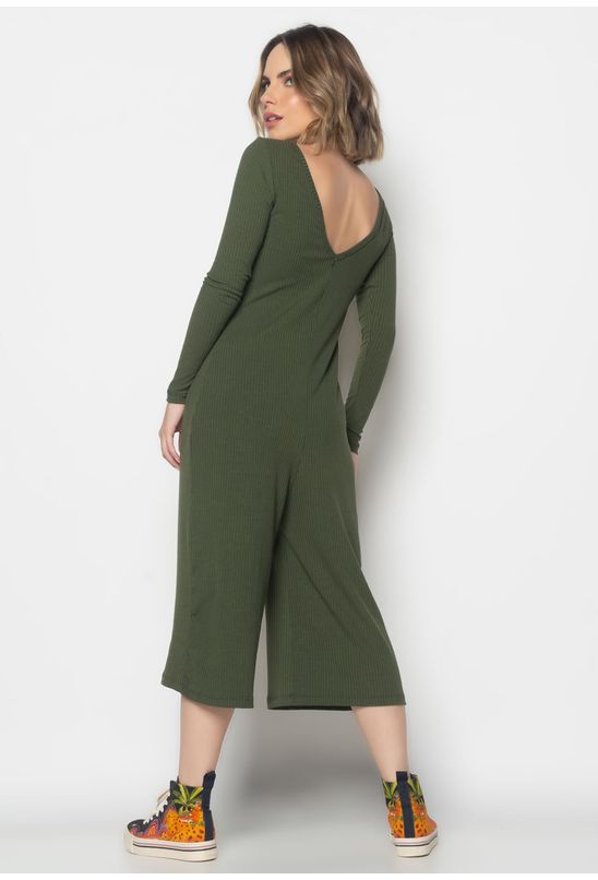 Macacão Manga Longa Pantacourt Canelado Verde Salvatore Fashion