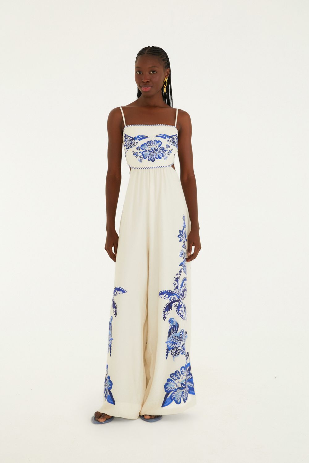 macacão pantalona estampado coqueiro tropical é a peça perfeita para quem busca um toque de leveza e originalidade. com alças finas e decote quadrado, ele destaca-se pelo caimento fluido e modelagem ampla. as estampas tropicais elevam o visual, ideal para dias casuais ou eventos especiais. FARM RIO original - verão 26.-