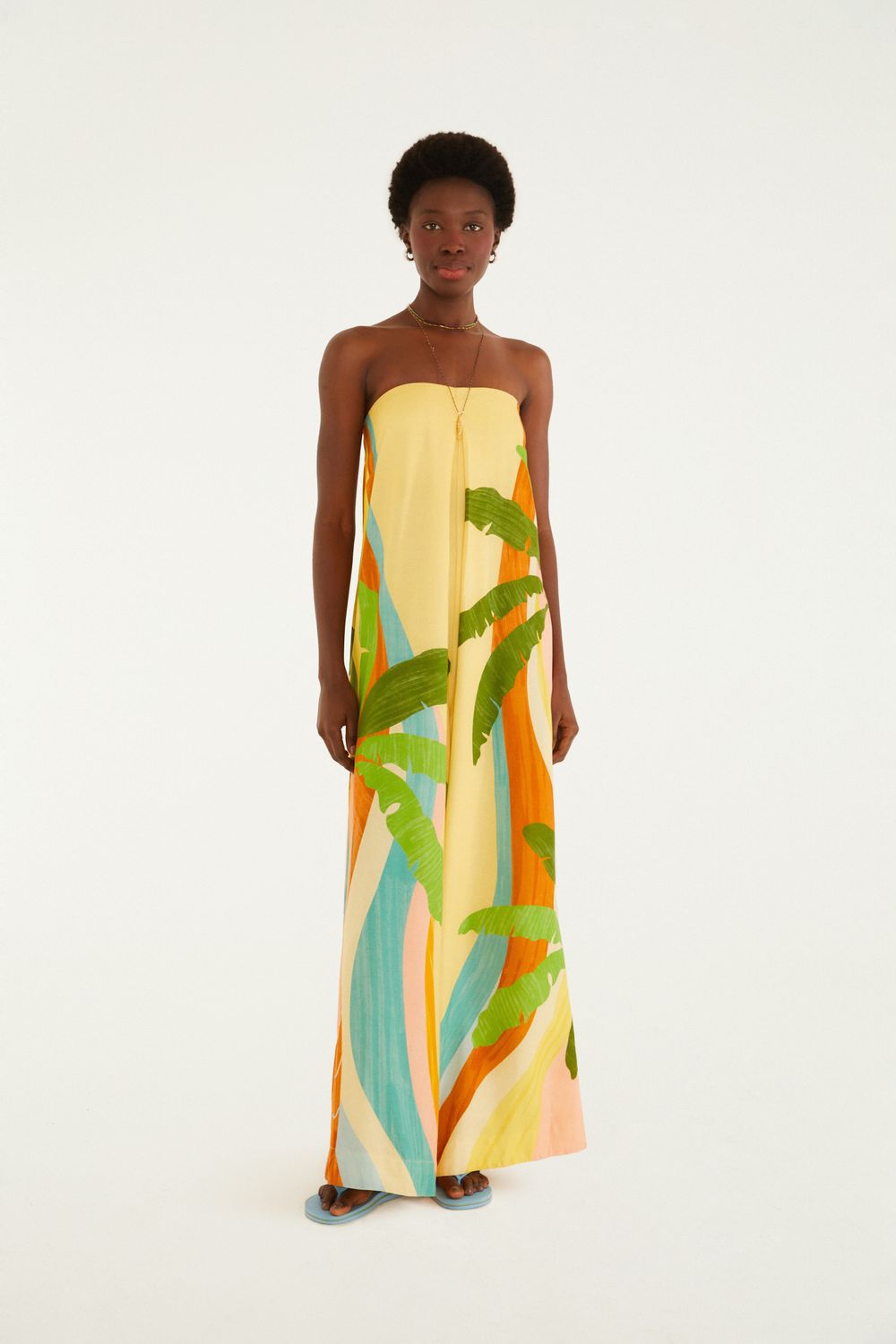 macacão pantalona estampado paisagem carioca. com alças ajustáveis e corte fluido, a peça oferece conforto e leveza em seus movimentos. confeccionado em tecido suave, é ideal para um passeio ao ar livre ou um encontro casual. os detalhes da estampa trazem um toque único, realçando a originalidade da peça. FARM RIO original - alto verão 26.-