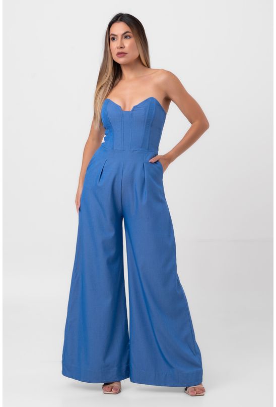 Macacão pantalona sem alças azul labrava