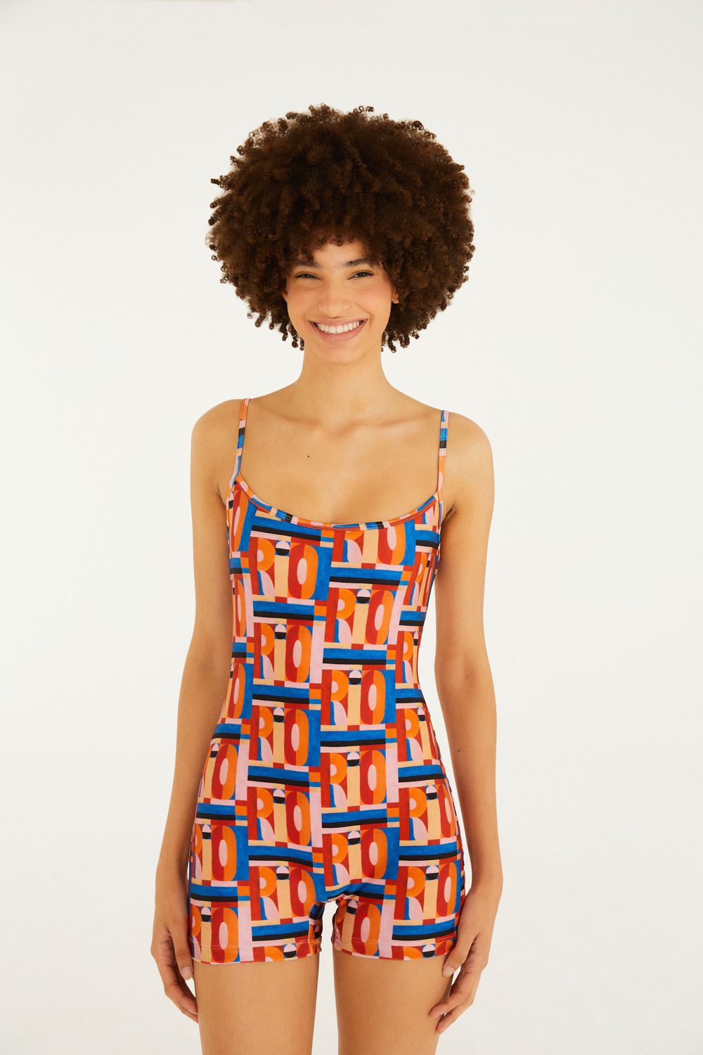 macaquinho rio gráfico. com alças finas e um decote suave, ele oferece conforto e frescor. a combinação de cores cria um visual único que é perfeito para passeios casuais ou dias ensolarados. a modelagem solta e leve valoriza a liberdade de movimento, ideal para momentos de lazer. FARM Rio, coleção Carioca - inverno 26.-