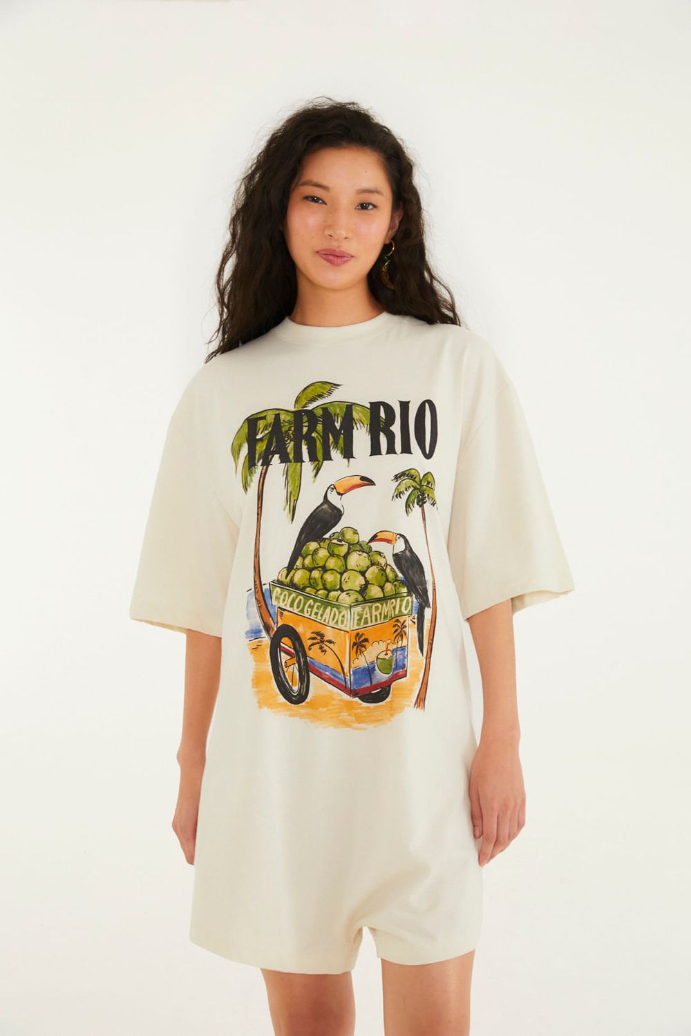 macaquinho farm rio coco gelado. com decote em v e alças ajustáveis, traz leveza com a modelagem solta e barras arredondadas. perfeito para um passeio casual ou um dia na praia. o toque descontraído eleva o espírito da estação. prepare-se para abraçar o verão com charme e conforto. FARM RIO original - verão 26.-