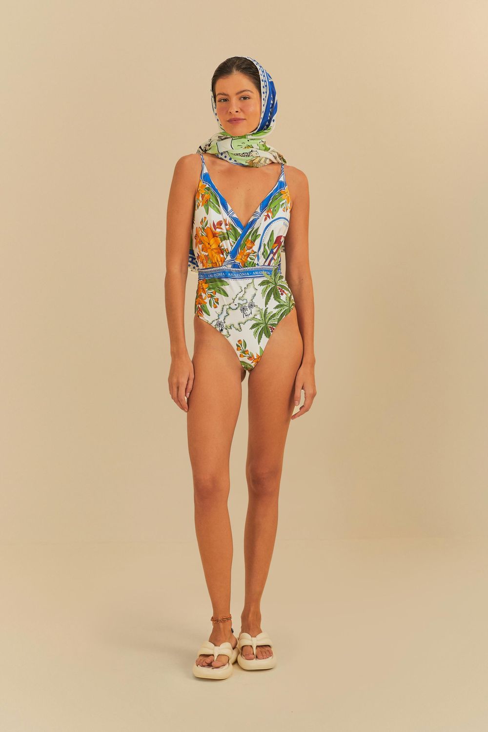 maiô localizado estampado destino tropical. apresenta decote profundo com alças finas ajustáveis, proporcionando conforto e versatilidade. a modelagem anatômica adapta-se ao corpo, ideal para momentos à beira-mar ou na piscina. destaca-se por sua estampa vibrante que traz frescor e alegria aos dias de sol. FARM RIO original - inverno 25.-