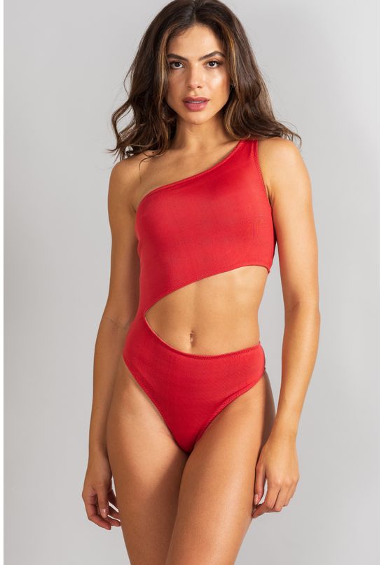 Maiô Tricot Ombro Super Fenda Lateral - Laranja Coral